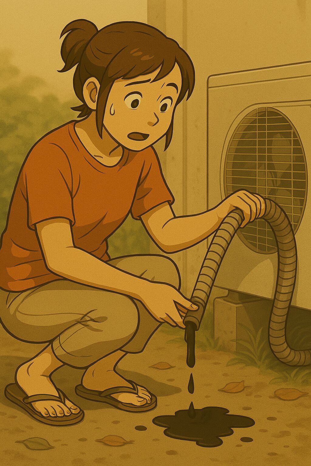ドレンホースは冷房時に発生する水分を排出する重要な通路です。詰まりは水漏れや臭いの原因に。